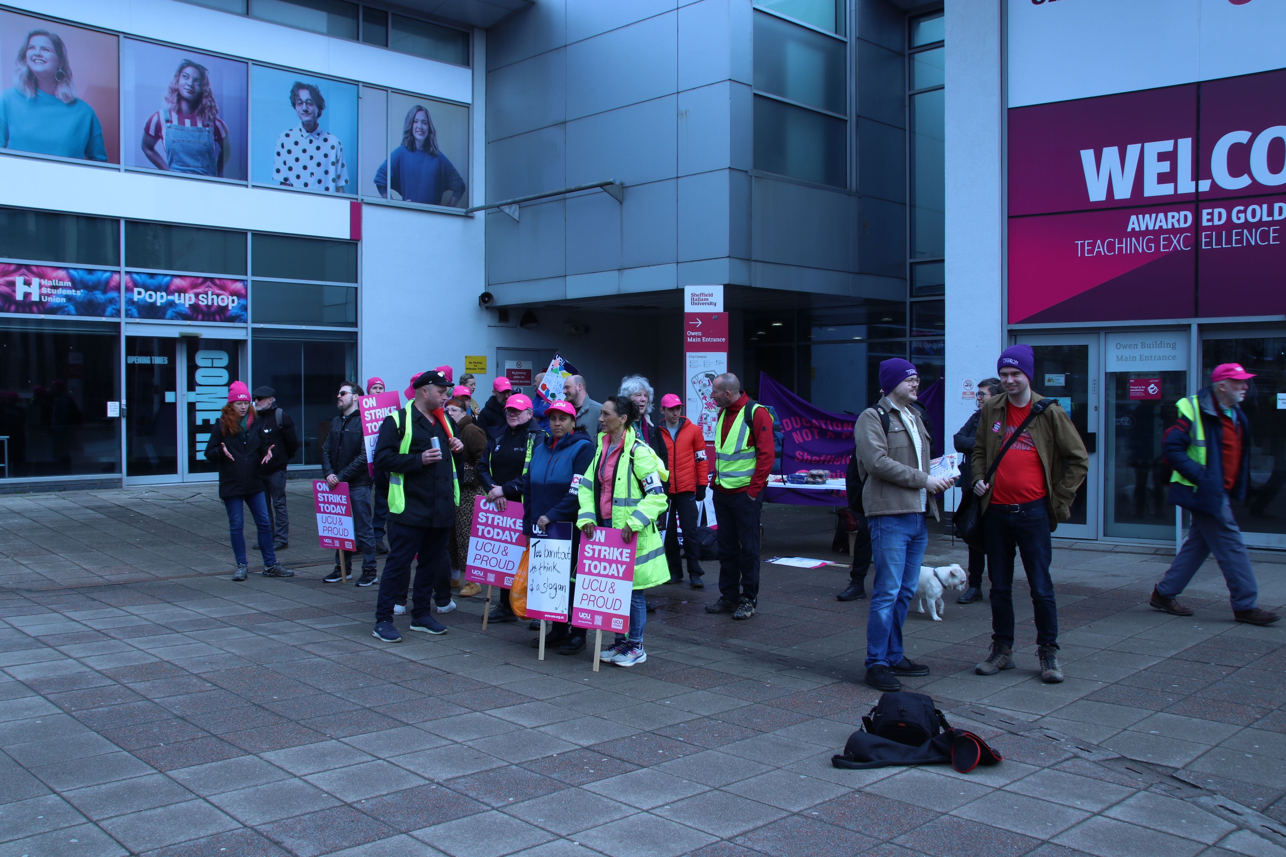 Academic staff picket Hallam University's Owen Building